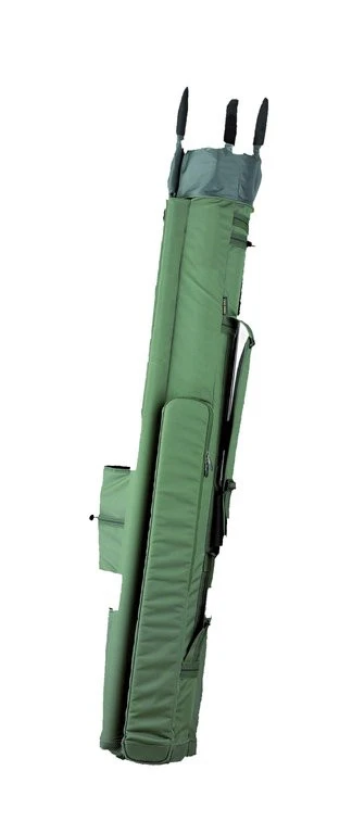 Hochwertiges Spezial-Futteral für den Transport montierter Angelruten. Konzipiert für 3 montierte Ruten. Diese Futteral nimmt aber locker noch eine weitere Rute auf. Das große Innenfach kann zusätzlich mit Kopfruten oder anderem Zubehör gefüllt werden. Ein ausziehbarer, wasserdichter Regenschutz mit Zugband schließt den Innenteil sicher ab. Zwei aufgesetzte Reißverschluss-Außentaschen bieten Platz für Erdspieße, Schirm oder Kescher. Die Maße betragen 155 x 21cm. Das Futteral besteht aus 100% Polyester.
