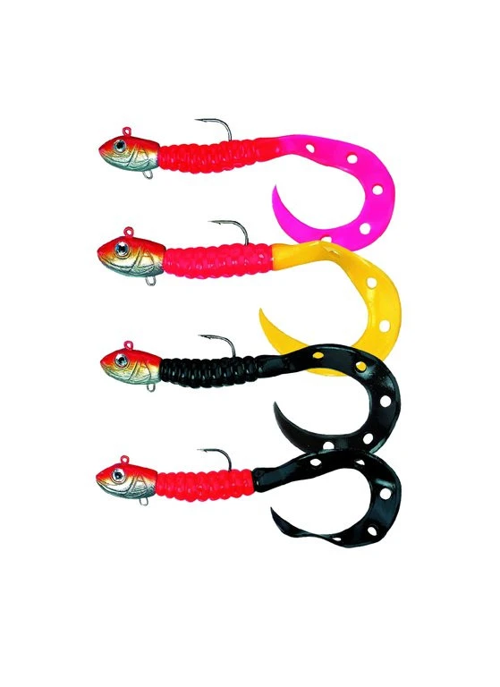 Dieser Dorsch-Knaller ist ein Erfolgsköder für Dorsch und Heilbutt. Für den schnellen Einsatz im Salzwasser wurde dieses Twisterset bereits vormontiert. Das Einsatzgebiet reicht von Dorsch bis Köhler. Die Lieferung erfolgt incl. Ersatzschwanz. Es stehen vier fängige Farben mit vier verschiedenen Gewichten von 30g bis 90g zur Verfügung.