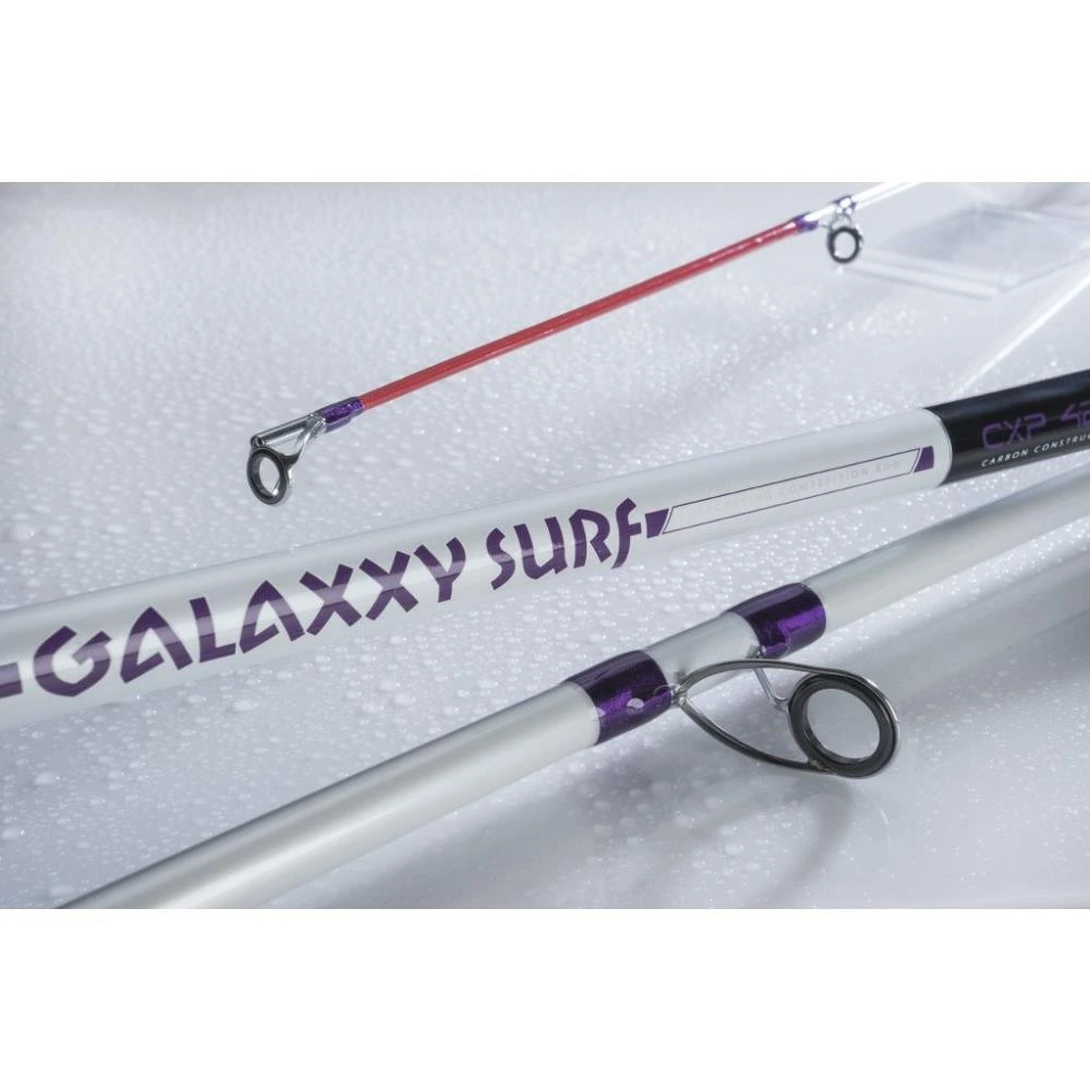 Mit der DEGA GALAXXY Surf CXP 420 sind Sie bestens gerüstet, wenn Sie mit den Profis mithalten möchten. Neben dem attraktiven und ansprechenden Design verfügt diese Rute über alle Eigenschaften, welche eine „echte“ Brandungsrute auszeichnen. Durch den schnellen und straffen Blank, die sehr großen Long-Distance Ringe sowie stabile Schraubrollenhalter, können mit der Galaxxy Surf CXP 420 Wurfgewichte von bis zu 250 Gramm extrem weit geworfen werden.