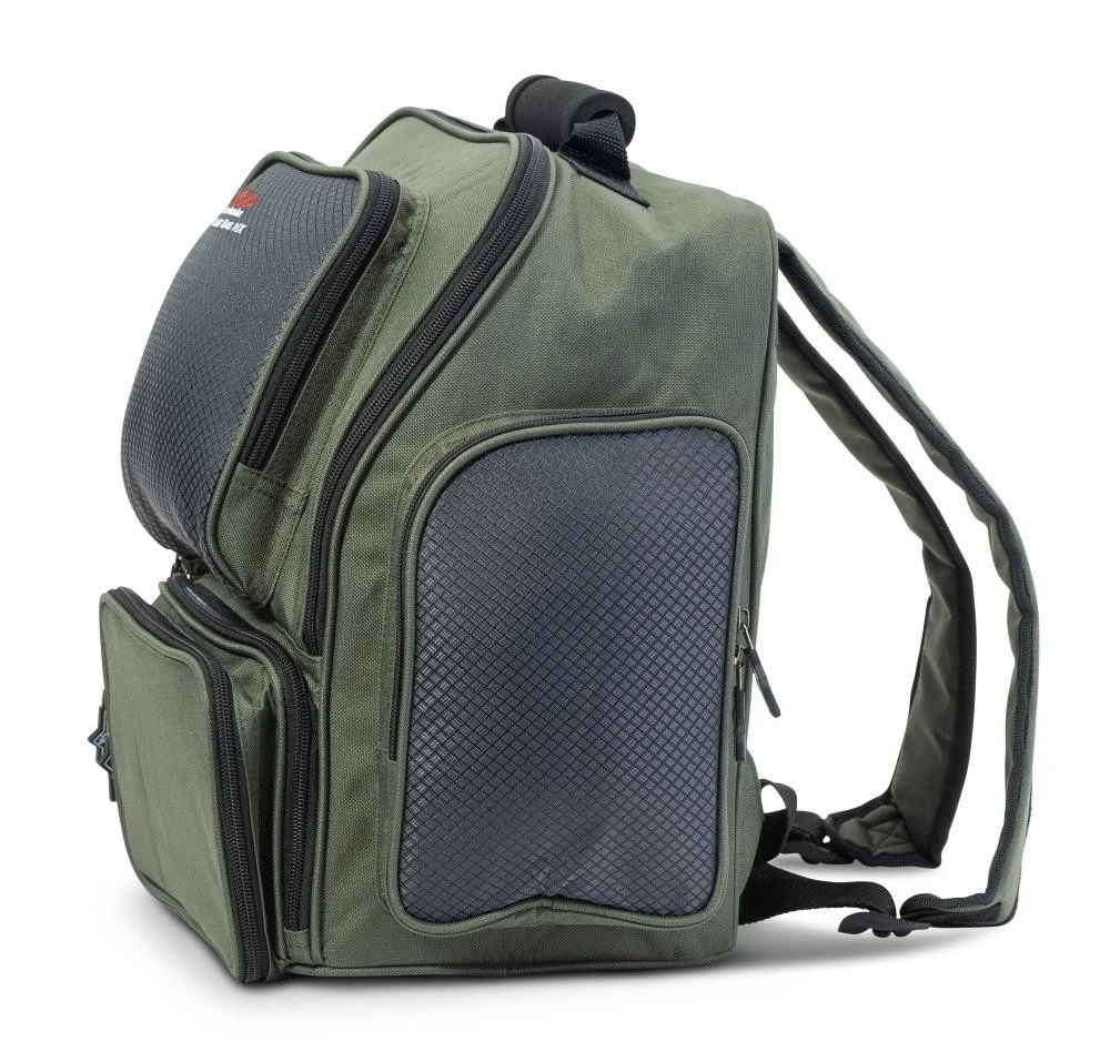 Das BP im Namen des IRON CLAW BP Lure Bag NX steht für „Back Pack“. Das ist der Tatsache geschuldet, dass dieses Modell als Rucksack getragen werden kann. Im Lieferumfang befinden sich drei Gerätekisten, welche im unteren Fach untergebracht sind. Am oberen Fach ist noch eine Vortasche angebracht und auf beiden Seiten befinden sich auch noch zusätzlich aufgesetzte Taschen.