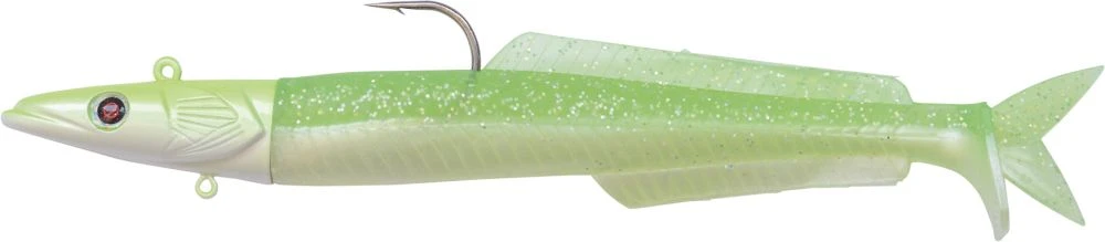 Tolle Sandaal-Imitation in vier Größen und fünf fängigen Farbkombinationen. Sandaale zählen zur Hauptbeute vieler Meeresfische und verfehlen ihre Wirkung nur selten. Geliefert mit einem Kopf mit zwei Schwänzen je Packung.