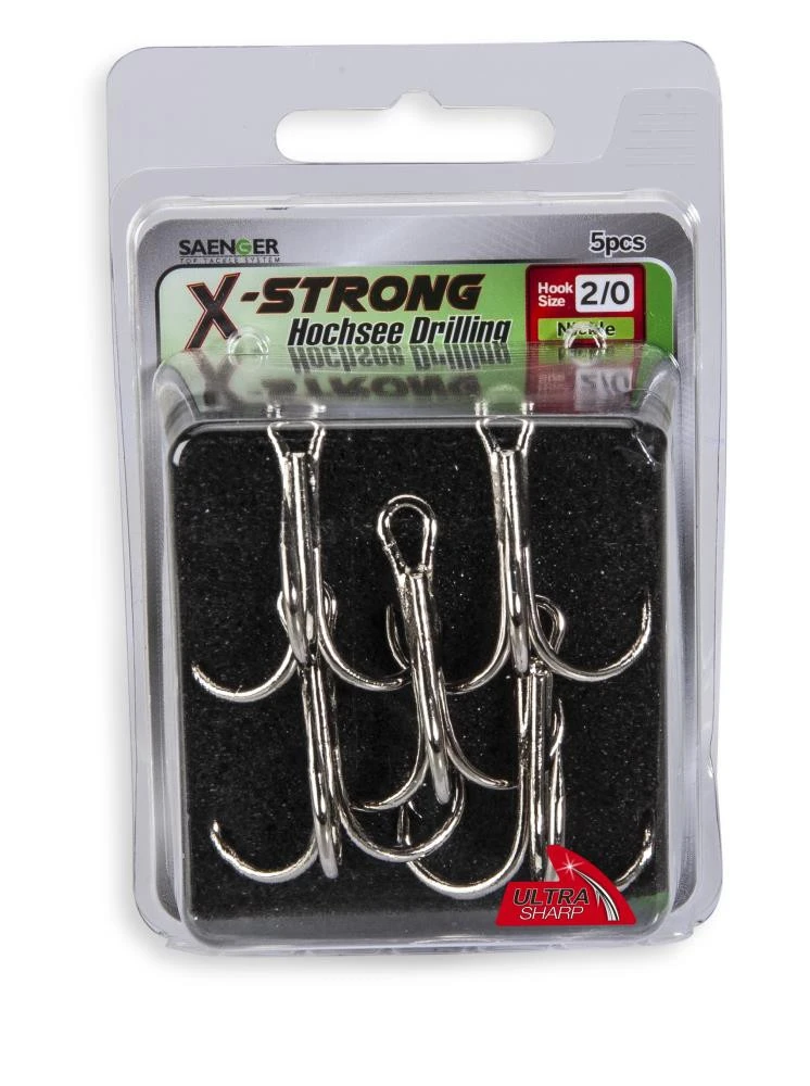 Diese Drillinge mit dem silbernen Coating gibt es in verschiedenen Größen von 8 – 8/0. In jeder Packung sind jeweils 5 Stück enthalten.